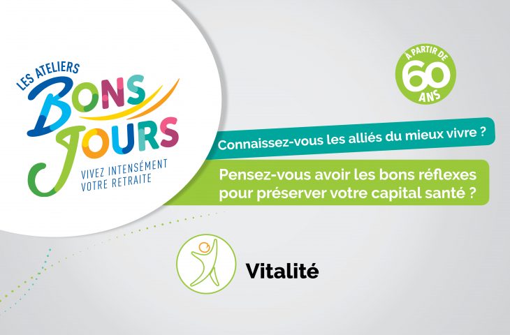 Les seniors sont de plus en plus nombreux dans notre société et l’espérance de vie ne cesse d’augmenter. La retraite est désormais vécue comme une « deuxième vie » modifiant ainsi l’approche traditionnelle de la vieillesse. Un vieillissement en bonne santé passe par l’adoption de comportements favorables et protecteurs pour la santé physique, mentale, sociale et environnementale, permettant ainsi aux personnes avançant en âge d’être actives socialement, sans discrimination, et de jouir, en toute indépendance, d’une bonne qualité de vie. Dans cette dynamique, les ateliers « Vitalité » élaborés par la Caisse Centrale de la MSA, apportent les clés pour préserver son capital santé, prendre soin de soi, et mener une vie plus heureuse et plus autonome. Une méthode interactive qui conjugue contenu scientifique, conseils pratiques et convivialité. L’atelier est labellisé par les médecins de la Caisse Centrale de la MSA.
